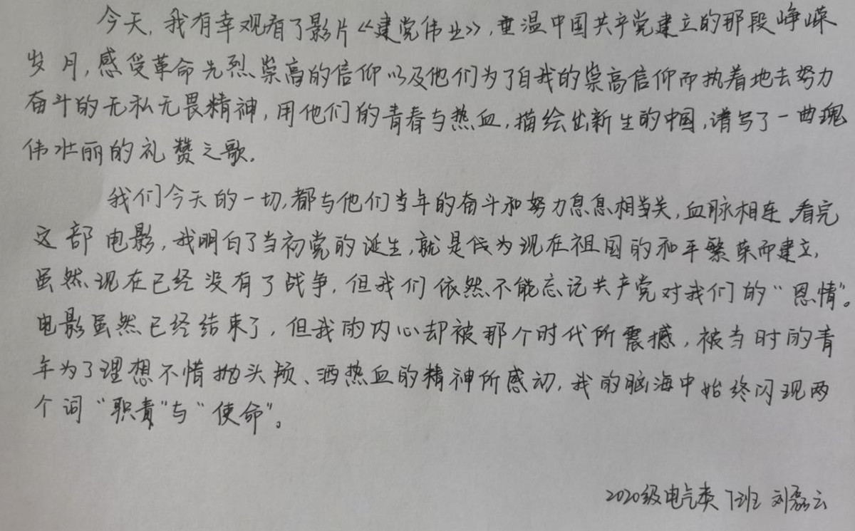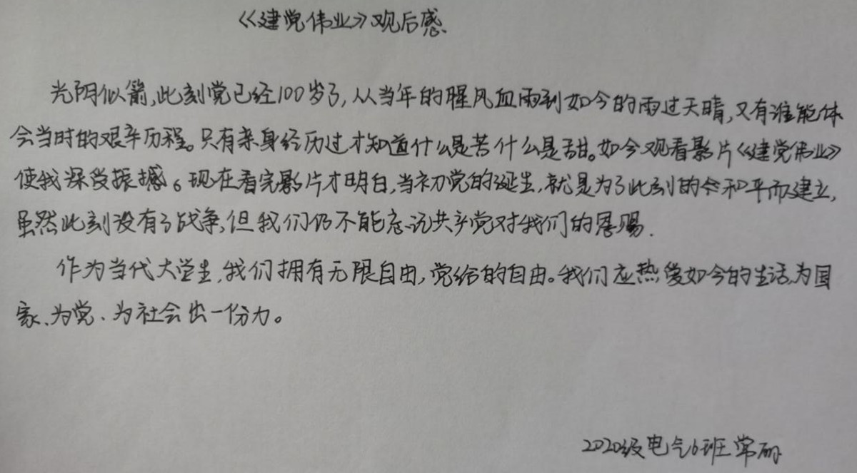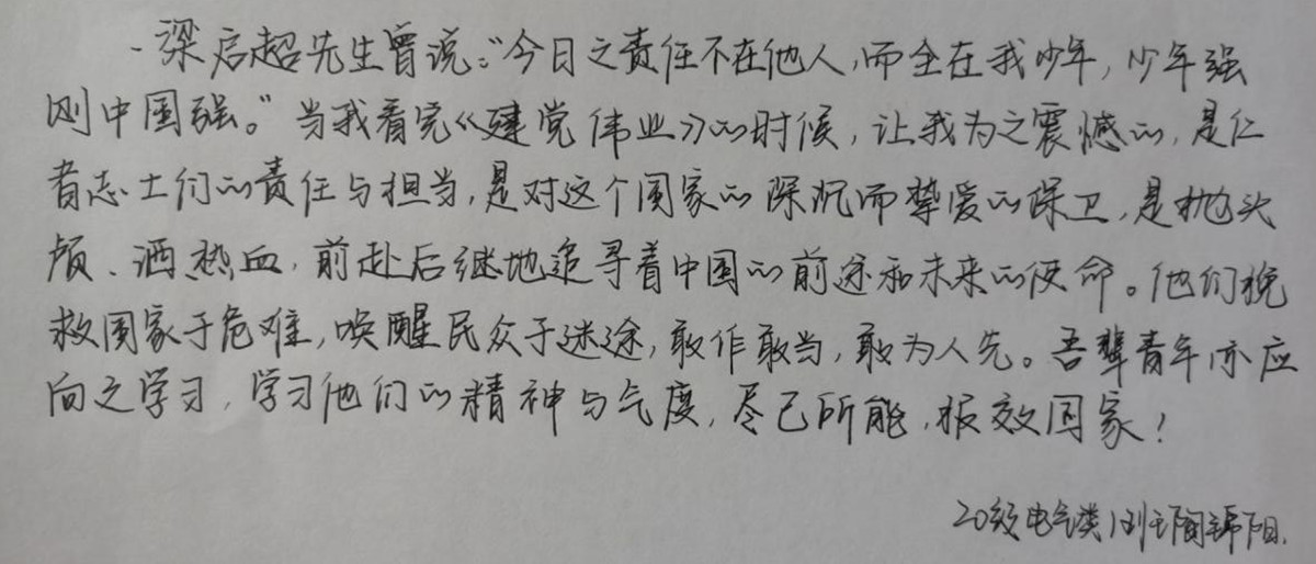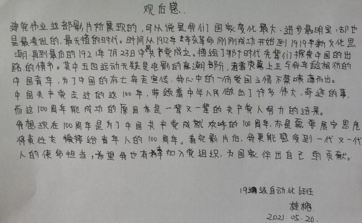此次观影学习是电气工程学院第一期青马工程培训班的第3次课程内容,学员们在影片的带领下再次重新认识了拯救民族危亡的中国共产党。回头仰望党的百年峥嵘岁月,同学们倍感崇敬更深知肩负重任,在这次生动的党史学习教育中,学员们愈发坚定了自己的共产主义信念,坚定了听党话、跟党走的决心。